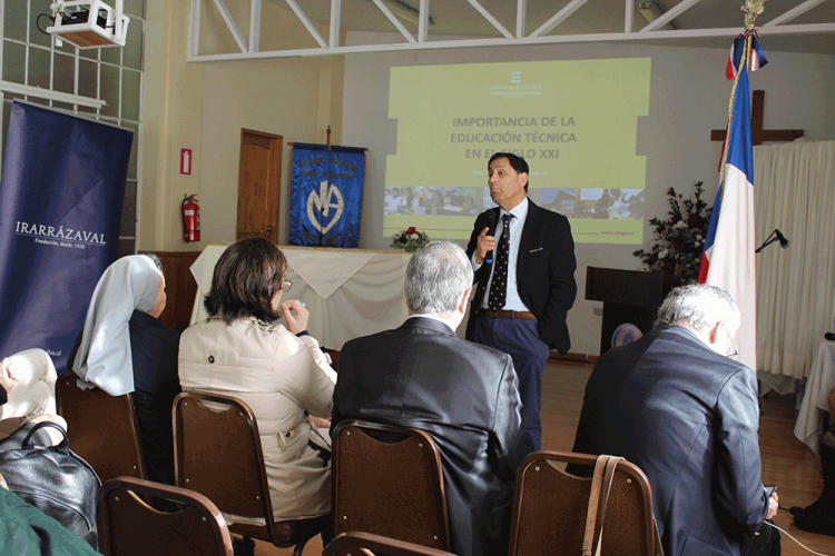 04 Septiembre 2018Profesores y directivos de colegios técnicos profesionales se reunieron el día 31 de agosto, en el Instituto Politécnico María Auxiliadora, Puerto Montt, para participar en el seminario “Educación Media Técnico Profesional: Proyecciones al mundo laboral”, organizado por la Fundación Irarrázaval y el Instituto Politécnico María Auxiliadora.