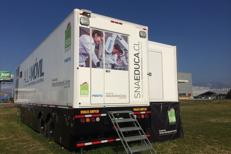 29 Agosto 2016Esta moderna sala de clases “sobre ruedas” llevará tecnología de automatización industrial y mecatrónica a liceos de enseñanza media técnico profesional que imparten especialidades afines, a los largo de todo el país. En una primera instancia, atenderá a los alumnos de los 20 colegios que pertenecen a la SNA Educa, luego se espera acudir a otros establecimientos de formación técnica que requieran de esta tecnología.