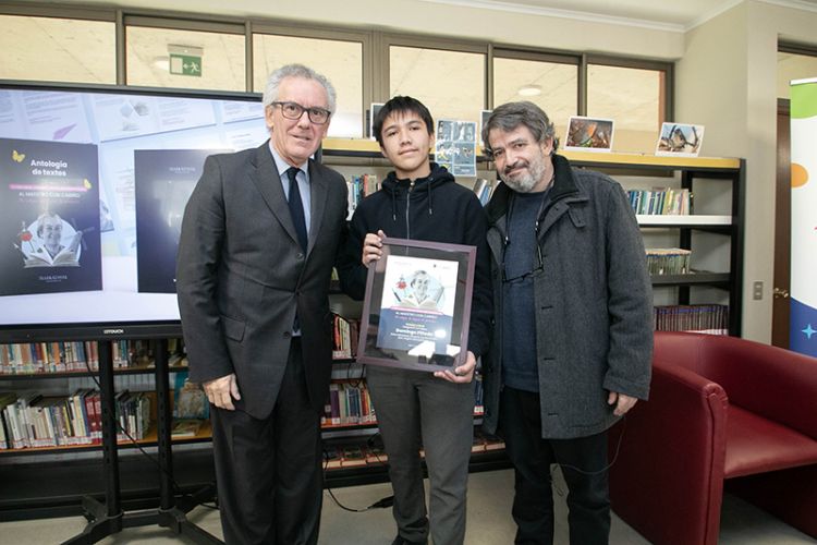 Por su parte, Benjamín Valenzuela, estudiante de la Escuela Agrícola Salesiana Don Bosco de Linares, y quien obtuvo el tercer lugar en la categoría Enseñanza Básica, indica que fue un excelente reconocimiento el poder estar en esta ceremonia, “es muy especial para mí” y agregó que para él “la escritura es el arte de pensar”.
