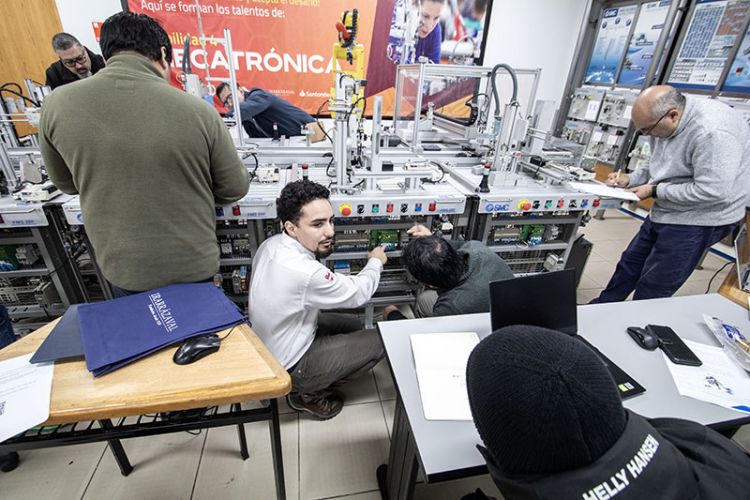 A través Pasantía de Mecatrónica básica: FMS 200 y del Curso Ruta de la Automatización: Neumática, Electroneumática y Programación de PLC, profesores de las especialidades de Electricidad, Electrónica y Mecánica Industrial de la RED Irarrázaval profundizaron sus conocimientos.