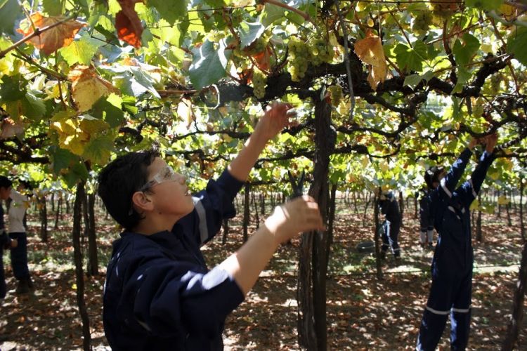 Como ya es tradición, los estudiantes de Primero a Cuarto Medio de la Escuela Agrícola Las Garzas, de Chimbarongo, cosecharon la uva de las 3,2 hectáreas de parrón vinífero de uva chardonnay que posee el establecimiento.
