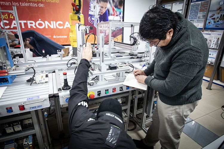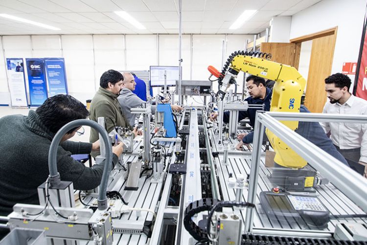 A través Pasantía de Mecatrónica básica: FMS 200 y del Curso Ruta de la Automatización: Neumática, Electroneumática y Programación de PLC, profesores de las especialidades de Electricidad, Electrónica y Mecánica Industrial de la RED Irarrázaval profundizaron sus conocimientos.