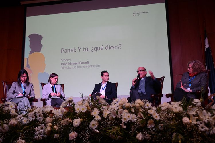 La segunda jornada del Seminario inició con una misa y luego se desarrolló un panel de conversación conformado por Monseñor Fernando Chomalí, arzobispo de Santiago; Ita Larraín, psicóloga clínica y educacional de la Universidad Católica; María Ignacia Lewin, directora del Colegio Santa Teresa de los Andes de La Pincoya; Paulina Diez, profesora ganadora del Premio para Profesores de Religión Elisa Valdés; y José Manuel Parodi, director Implementación de Fundación Trabün, quien moderó la conversación.